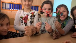 V pracovních činnostech jsme vyráběli čerty. Kubík dokázal za pomocí špejlí čerta rozpohybovat a strhl celou třídu k animacím.