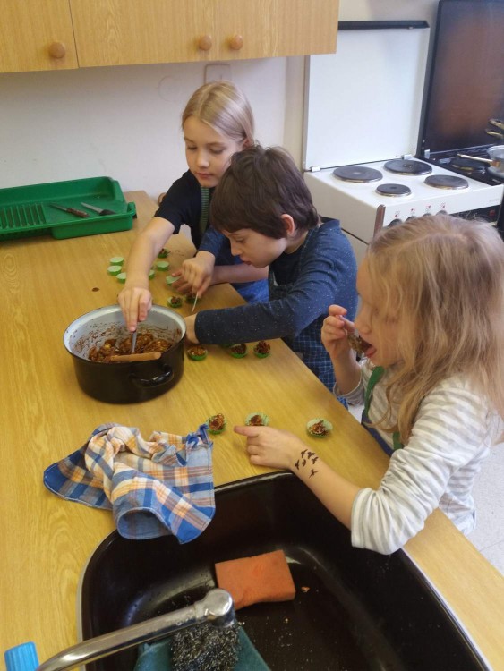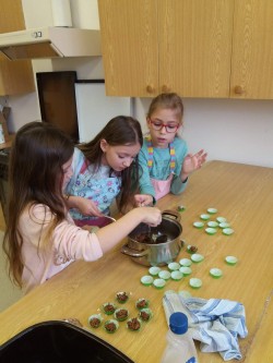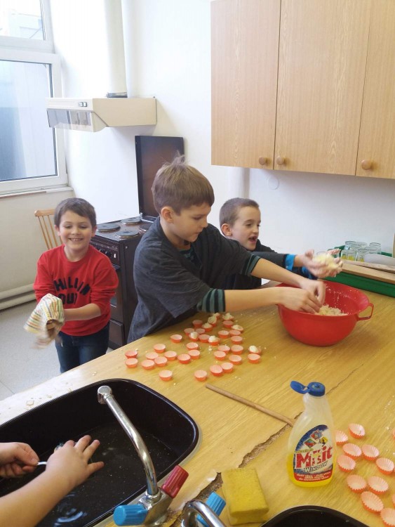 Ve školní kuchyni jsme společně připravili nepečené cukroví - čokoládové košíčky a kokosové kuličky. Byla to taková dobrota, že jsme během příprav museli neustále ochutnávat a nejoblíbenějším slovem bylo "mňam". Naštěstí jsme zvládli donést i něco na ochutnání domů pro rodinu.