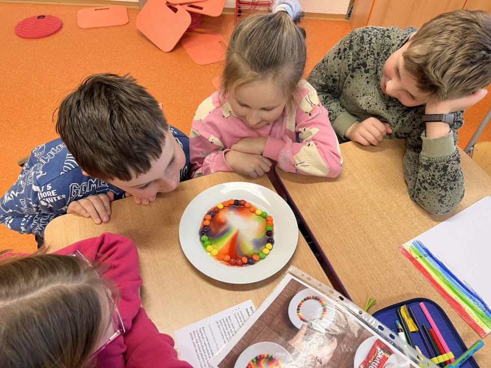 Do 2. pololetí jsme vstoupili aktivně i hravě - pracovali jsme ve čtyřech centrech aktivit, která dětem umožnila opakovat učivo, spolupracovat a objevovat nové souvislosti. V jazykovém centru si žáci zopakovali učivo z českého jazyka formou her, doplňovaček a práce s textem. Procvičovali čtení s porozuměním a pravopis převážně ve vyjmenovaných slovech. V centru matematiky se děti věnovaly opakování základních početních dovedností. Počítaly, řešily úlohy a přemýšlely nad matematickými hádankami - teprve po splnění obtížnosti mohly postoupit dále – nechyběla logika ani zábava. Velký zájem vzbudilo centrum Pokusů a objevů, kde na téma Poznej sám sebe děti objevovaly svět barev, emocí a vlastních silných stránek. Učily se vnímat samy sebe i ostatní a mluvily o tom, v čem jsou jedinečné. Nechyběl pokus s barvami, kde na konci bylo povoleno ochutnat pomůcku :-).V centru Ateliér jsme se vydali do vesmíru mezi planety a hvězdy. Děti pracovaly s obrázky, informacemi a rozvíjely svou fantazii i zvídavost. Vznikla nám galaxie mléčné dráhy s osmi planetami.