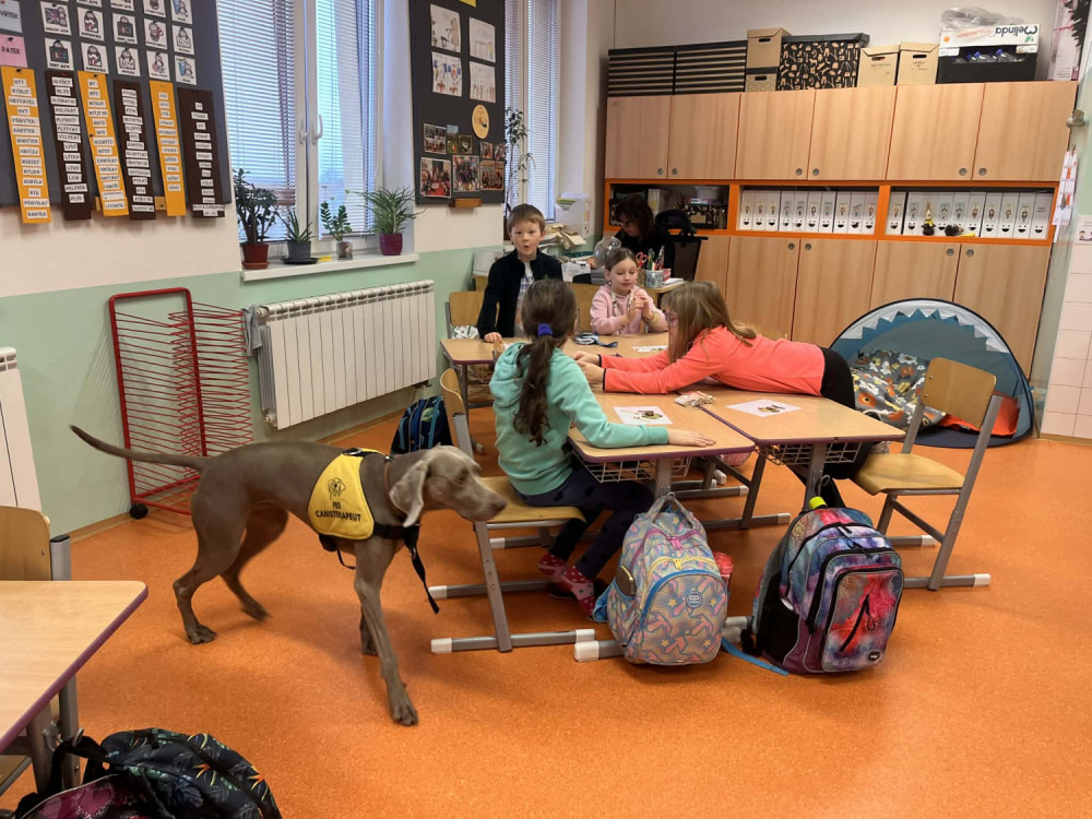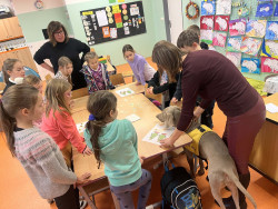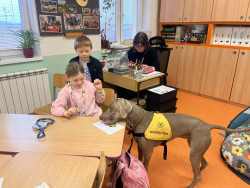 Před Vánoci naši třídu navštívila paní psycholožka se svým canisterapeutickým pejskem a připravila pro děti program plný zajímavých stanovišť a úkolů.