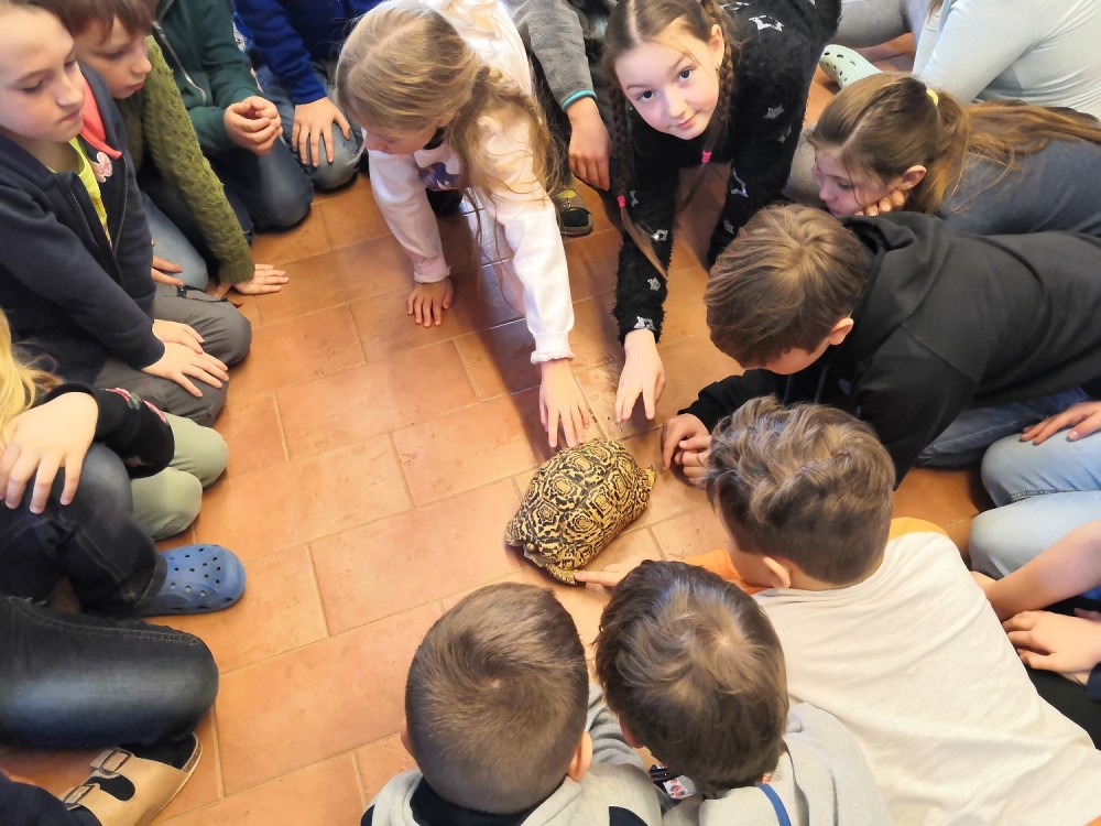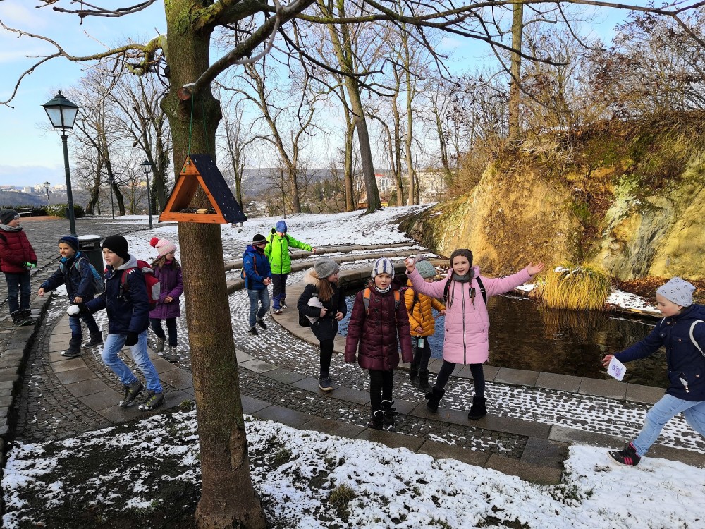 Poslední únorový pátek jsme se vypravili do střediska ekologické výchovy Hlídka na Špilberk. V Brně byl za letošní zimu sníh jen 3 dny a jeden z nich se nám podařilo zažít. Při bloudění okolo Špilberku jsme stihli sněhuláka i koulovanou. Na Hlídce jsme měli možnost pohladit si suchozemskou želvu a zažít výpravu do podzemí plné polodrahokamů.