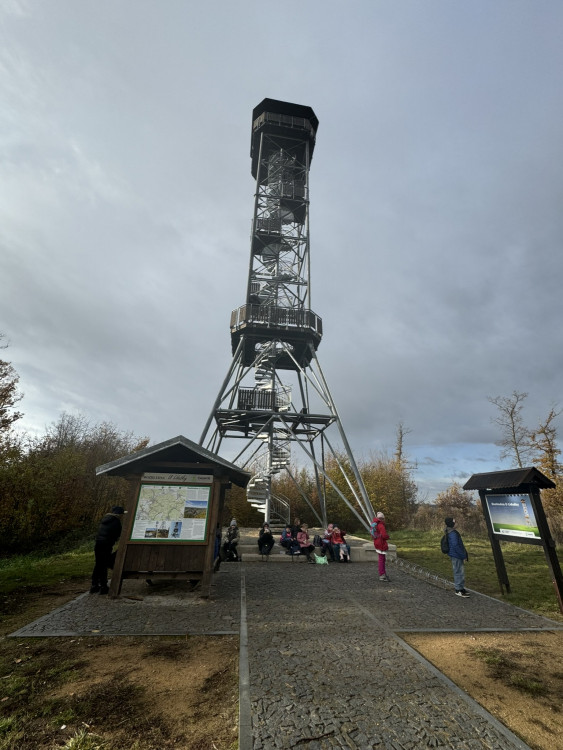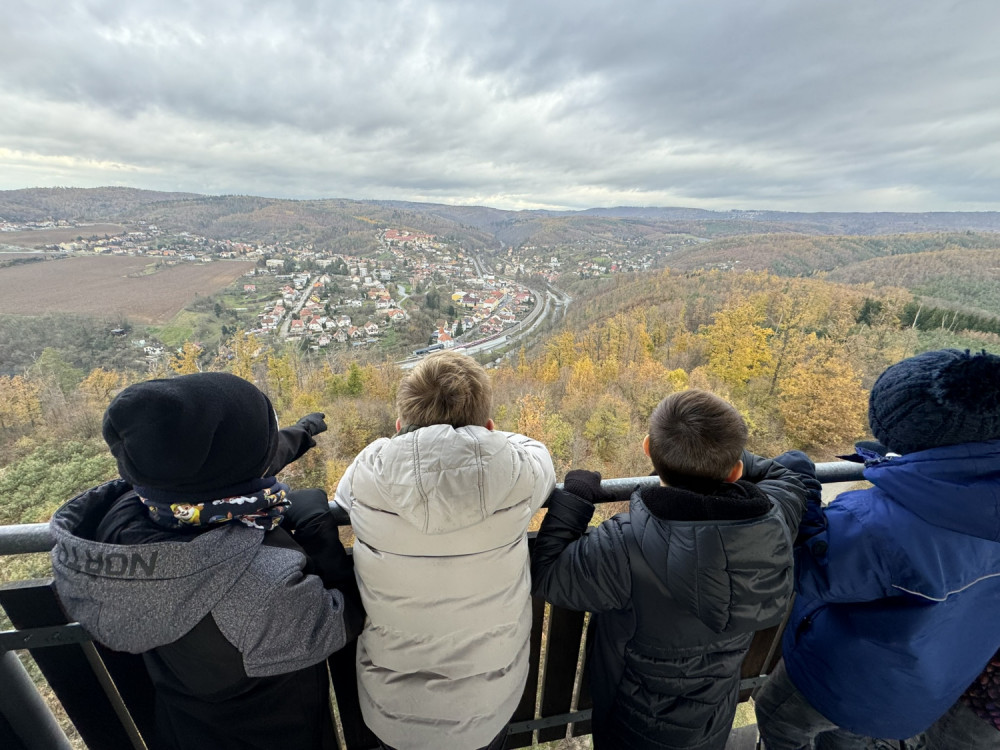 S dětmi jsme se tedy společně vydali vlakem do Bílovic nad Svitavou, prošli jsme trasu okolo Myslivny lišky Bystroušky, studánky Leoše Janáčka, přes památník Lidušky až na rozhlednu "U Lidušky". Když jsme zdolali všech 131 schodů, naskytl se nám krásný výhled na "Moravské Švýcarsko", tedy Bílovice nad Svitavou, bílovické a babické okolní lesy, Brno nebo vysílač Hády.