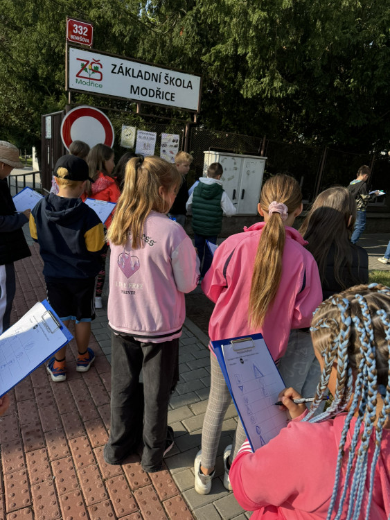 Zvolili jsme trasu, která je nám všem velice dobře známá - kolem budovy Komenské, směrem na Benešovu, okolo hřiště a na závěr jsme si prošli trasu k modřické knihovně.