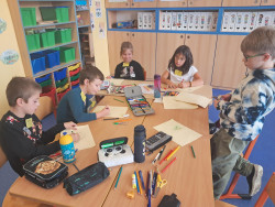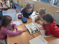 Naše obec Modřice - místo, kde žijeme. Jak moc ho dobře známe? O tom jsme se přesvědčili v centrech aktivit. V centru matematiky jsme pracovali s tabletem a Zpravodajem. Děti hledaly podzimní akce a zapisovaly je do vlastně vytvořené tabulky. V centru čtení přemýšleli, jak vzniklo jméno Modřice a svou hypotézu porovnali s pravdou. Nejčastěji si mysleli, že název je spojený s modřínem nebo modrou barvou. K dispozici měli knihu o Modřicích, kde si prohlíželi fotografie a srovnávali minulost a přítomnost. V centru psaní vymýšleli života báseň o Modřicích. Vzniklo spoustu krásným textů. V centru ateliér navrhovali nový erb a poté ve třídě hlasovali o vítězi. Třeba se nový erb zalíbí i jiným. V posledním centru, centru objevů a pokusů, dostali mapu a tablet. Měli za úkol naplánovat si cestu po významných místech a vyfotit je. Na fotkách se objevil i náš třídní maskot Jiskra. A jedna zajímavost na konec - věděli jste, že Modřice měli "hrad"? My už to víme.