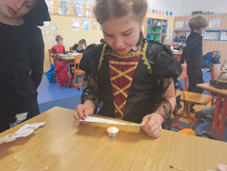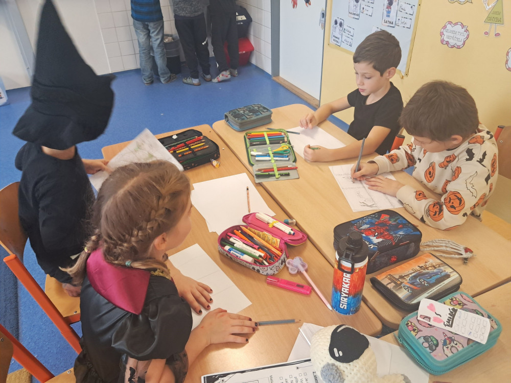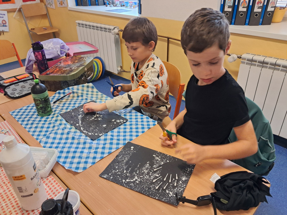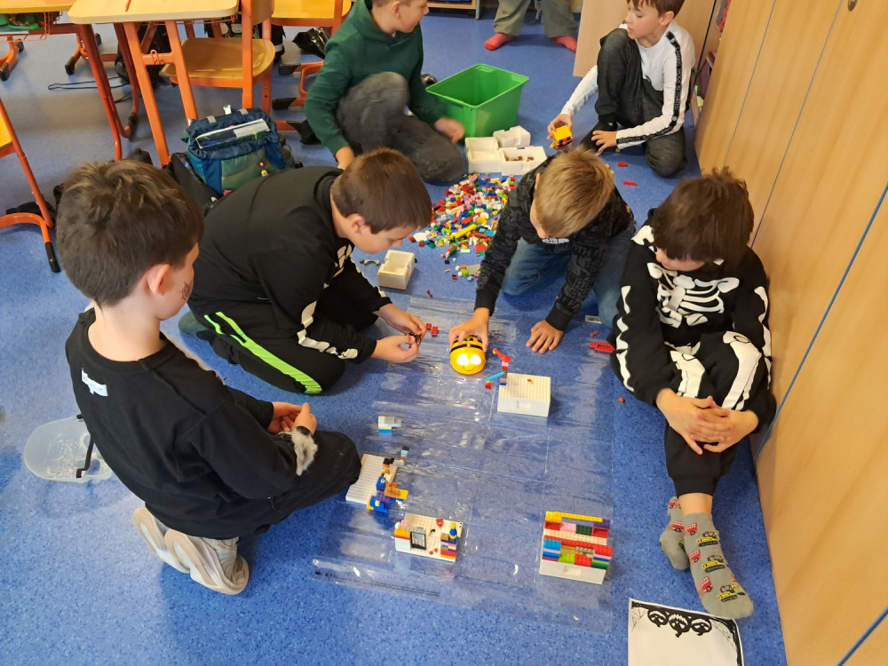 Okolo svátku Halloween a Dušiček jsme si ve třídě udělali "Strašidelný den". Vymýšleli jsme strašidelný komiks, vytvářili jsme rentgen ruky, skládali jsme z lega strašidelné domy a chystali pro BeeBota hororovou stezku odvahy. Čekalo nás i několik strašidelných pokusů - tancující duchové, vzkaz ze záhrobí a elektrický duch.