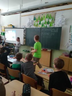 Dnes jsme měli v rámci přírodovědy velmi zajímavou hodinu. Vrátil se totiž náš spolužák Adrian Adam i se spolužačkou ze 4.A Aničkou Kornhauserovou ze svého pobytu v Mexiku. Že jsme jim tak trochu záviděli, je jasné. Málokomu se poštěstí o Vánocích koupání v moři a užívání si překrásné přírody. Alespoň nám toto vše naši spolužáci přiblížili ve své prezentaci. A tak jsme se dověděli například, jak je Mexiko veliké, kolik obyvatel v něm žije, s jakými živočichy se tam můžeme potkat, která jídla Mexičané vaří a mají v oblibě.aké jsme všichni obdrželi pěkný dáreček a ochutnali mexické chipsy.