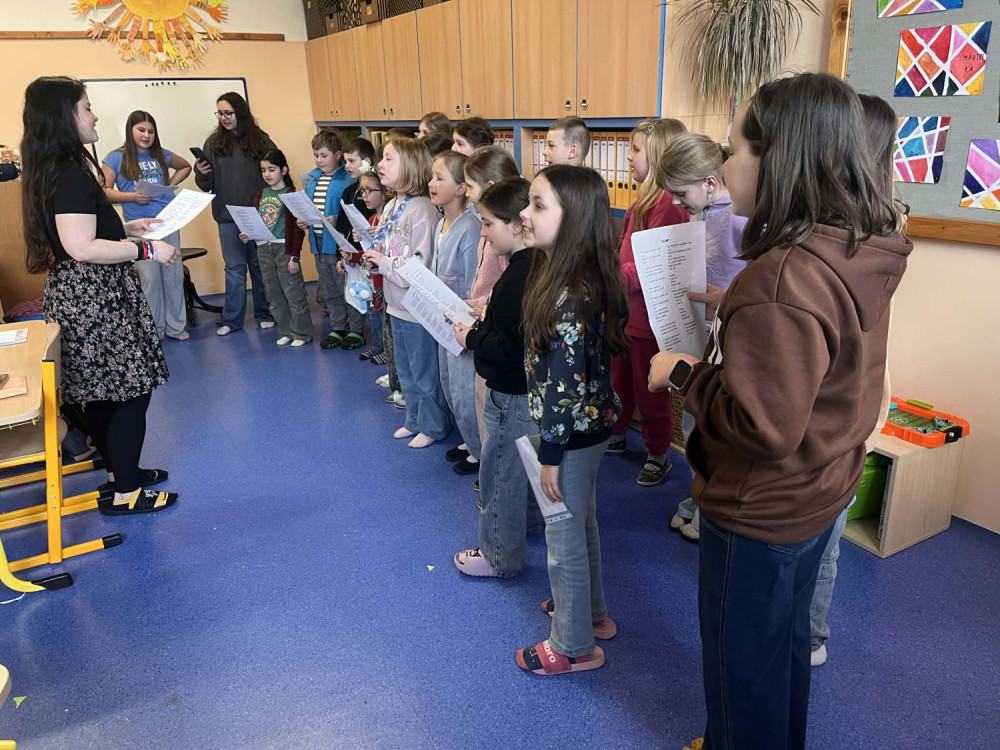 Od druhého pololetí letošního školního roku byl na naší škole nově založen školní pěvecký sbor. Navštěvují jej nadšení zpěváci z 2. až 6. třídy, kteří mají rádi hudbu a chtějí si společně zazpívat. Na pravidelných zkouškách se děti učí nové písničky, pracují s hlasem a zažívají radost ze společného muzicírování. Zkoušky probíhají v přátelské atmosféře a je krásné sledovat, s jakým nadšením se děti do zpěvu zapojují. Do budoucna bychom chtěli připravit také první společná vystoupení, aby mohli mladí zpěváci potěšit svým zpěvem spolužáky, rodiče i učitele.