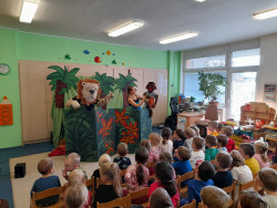 Začátkem listopadu jsme se vypravili navštívit MŠ Modřice. Čekal na nás program v podobě africké pohádky o černouškovi Bum-ti a jeho hledání vody a bubínku. Na svojí cestě potkal spoustu cizokrajných zvířat. Některá z nich dokonce vylezla zpoza paravánu až do publika, které se velmi dobře bavilo. Návštěvu jsme zakončili protažením těla na hřišti MŠ.