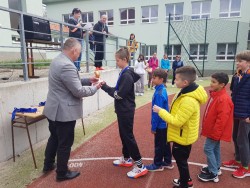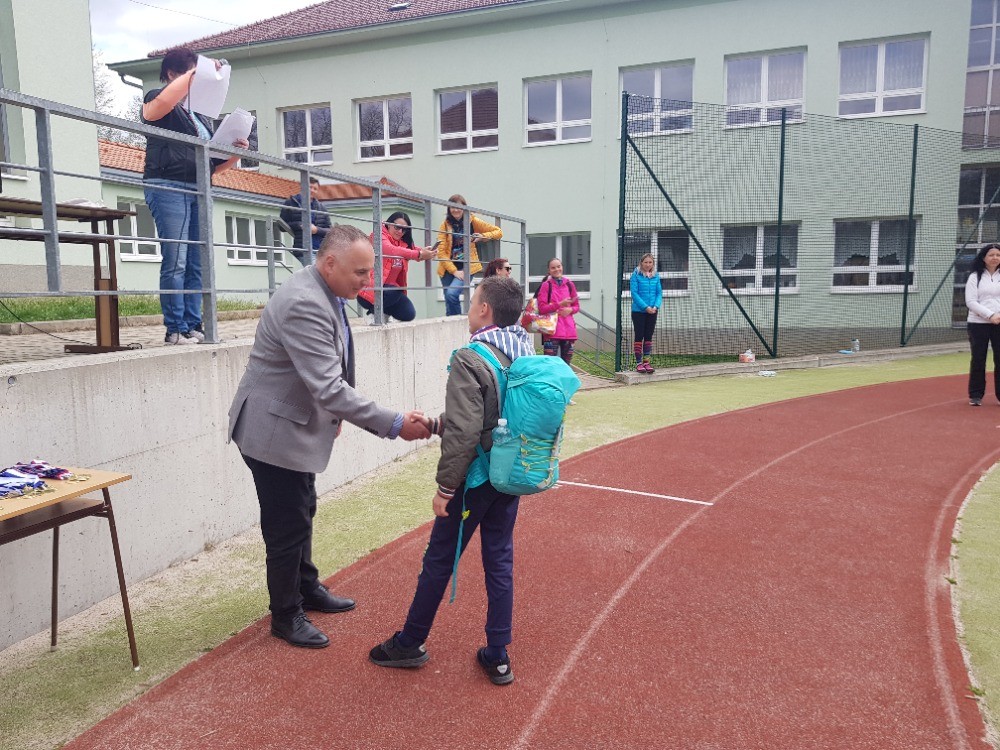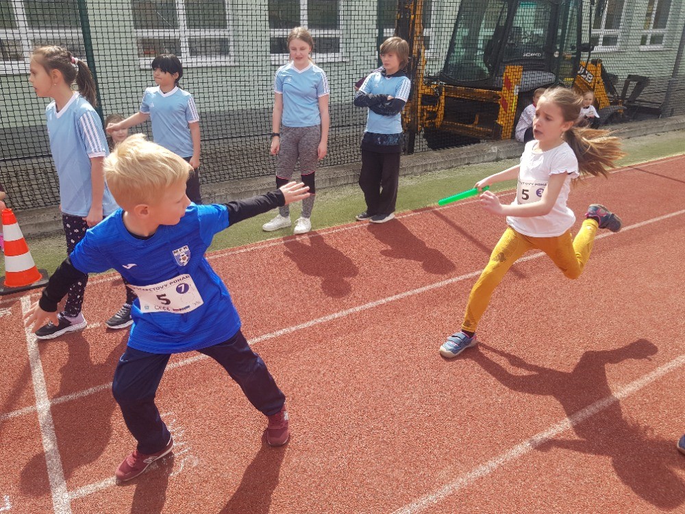 Žáci 2. - 5. tříd se dnes zúčastnili okresního kola "Štafetového poháru" v Ořechově u Brna. O pohár soutěžilo celkem 11 základních škol. Každý žák běžel dvě štafety, mladší žáci 2. - 3. tříd běželi štafetu 8 x 100m a to samé žáci 4. - 5. tříd. Druhá štafeta byla smíšená, společně běželi žáci 2. - 5. tříd 8 x 200 metrů. Děti si mohly zasoutěžit i v doplňkových disciplínách, a to v hodu medicinbalem a ve skoku dalekém z místa. Na prvním místě ve skoku dalekém se umístil Matyáš Parma ze 3. třídy. Štafeta starších žáků 4. - 5. tříd se umístila na 1. místě. Ve "Štafetovém poháru" se sčítají časy ze štafety mladších žáků, starších žáků a ze smíšené štafety. Žáci naší školy se tak umístili na krásném 3. místě. Všem zúčastněným gratulujeme ke skvělé reprezentaci školy.