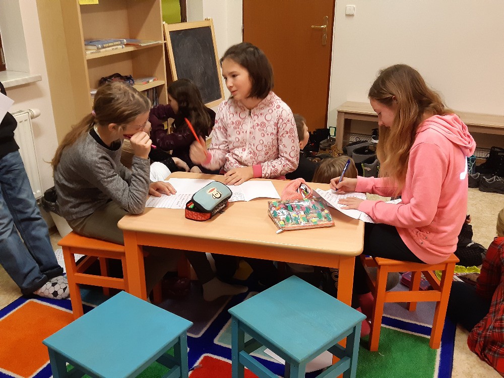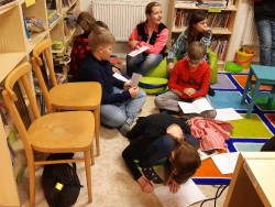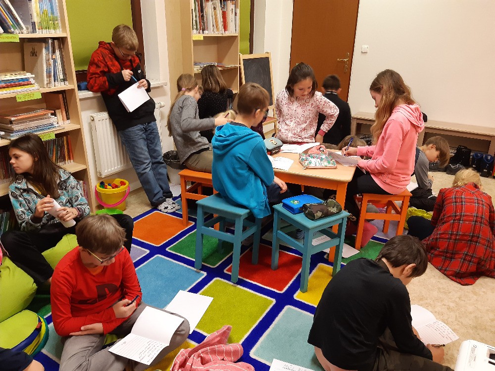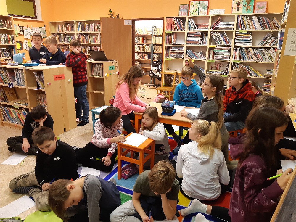 9. 12. 2019 V pondělí 9.prosince jsme měli výuku v modřické knihovně, kde nás paní knihovnice paní Strnadová seznámila s tím, co obnáší práce spisovatele.Také my jsme se sami pokusili o tvůrčí psaní. 15 / 12 / 2019 MG