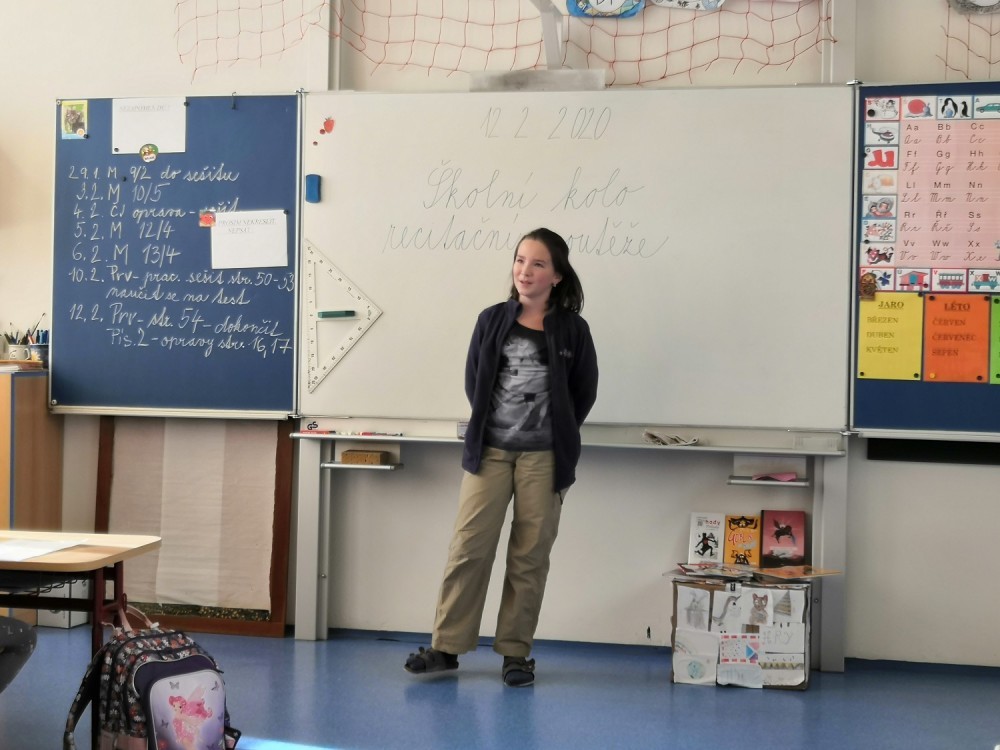 V hodinách českého jazyka často přednášíme básně a při této příležitosti se ukazuje, kdo z nás má k recitaci vlohy a koho poezie baví a nedělá mu potíže. Do recitační soutěže, která se konala na naší škole ve středu 12. února, byly nominovány i žákyně naší třídy Markéta Klangová a Eva Gajdušková. Obě dívky se básně, s jejichž výběrem jim pomohla paní učitelka třídní, poctivě naučily a také ve třídě několikrát zarecitovaly. Jejich námaha byla zúročena, Markéta Klangová se umístila ve velké konkurenci na krásném 2.místě. K jejímu úspěchu ji srdečně gratulujeme. A i když víme, že se nemohou na předních místech umístit všichni, moc si vážíme a děkujeme za účast a odvahu všem ostatním účinkujícím recitátorům.