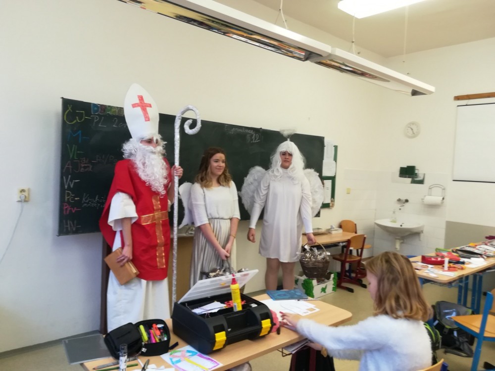 5. 12. 2019 Ve čtvrtek 5.prosince nás navštívil Mikuláš, doprovázený andělem a čerty. Nebáli jsme se, ba naopak, byli jsme rádi. Zlobivcům čerti domluvili a po zazpívání vánoční písně jsme byli všichni odměněni mikulášskou nadílkou. 8 / 12 / 2019 MG
