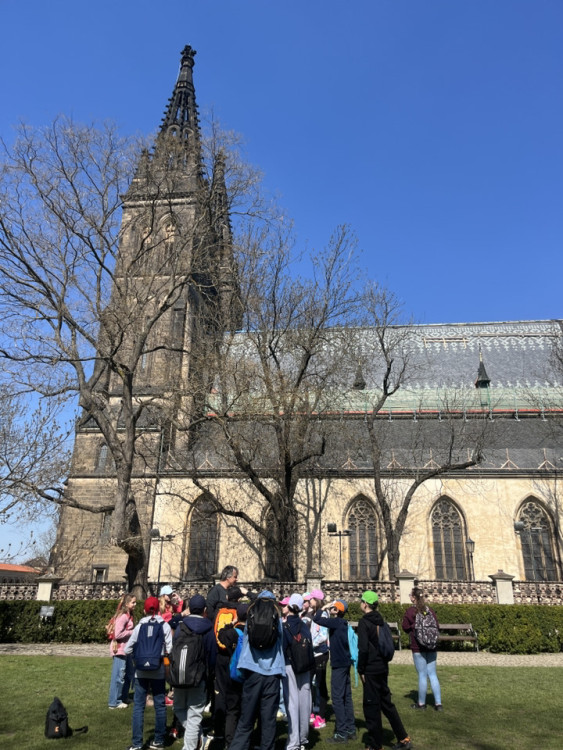 V pátek ráno jsme se se třídou 5.B vydali od školy na dvoudenní výpravu do našeho hlavního města. Po příjezdu do Prahy jsme se nejprve vypravili na Vyšehrad, kde na děti čekala zábavná bojová hra plná úkolů, indicií a zajímavostí. Během této netradiční aktivity se žáci dozvěděli mnoho o našich dějinách a významných osobnostech spojených s tímto místem.