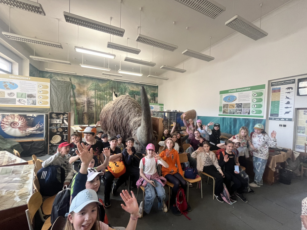 Po obědě jsme se přesunuli do Triloparku, kde jsme se ponořili do pravěkého světa. Děti nejprve vyslechly poutavou přednášku o vzniku života na Zemi a následně si samy vyzkoušely práci paleontologa. Měly možnost vytvořit si odlitky trilobitů, pracovat se sbíječkou, nebo se pustit do opatrného odkrývání "dávných kostí". Všichni byli nadšení z možnosti „šahat na věci“, o kterých se jinak jen učí.