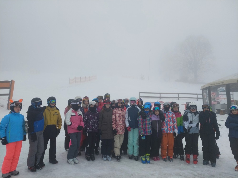 Žáci 7. tříd se v termínu 14. až 19. ledna zúčastnili lyžařského kurzu. Kurz probíhal v srdci Jeseníků, ve Filipovicích. Ubytování bylo v penzionu Pepovka, který i letos nabídl krásné ubytování s výborným jídlem a vyhřívaným bazénem, který jsme během týdne využívali.Každý den jsme lyžovali na sjezdovce, která se nachází v blízkosti penzionu. Počasí nám přálo a první dva dny nám padal sníh. Lyžařské podmínky byly ideální. Ve středu se nám ukázalo i sluníčko, a i když foukal silný vítr, tak za slunečného počasí jsme si lyžování uživali. Také si dobrovolníci vyzkoušeli i večerní lyžování na 1000m dlouhé osvětlené sjezdovce. I když nám počasí ukazovalo všechny své podoby, tak sjezdovka byla každý den perfektně připravená a mohli jsme ji využívat naplno.
