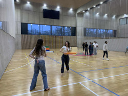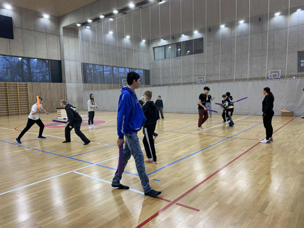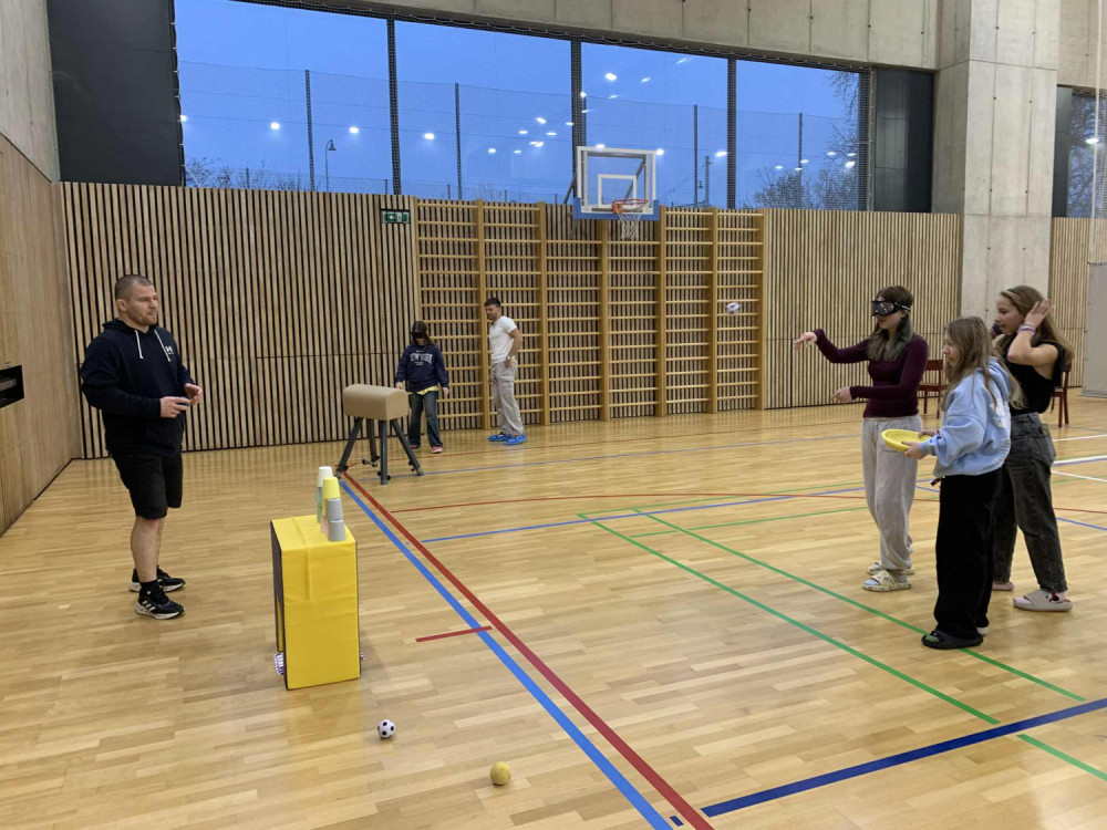 V tělocvičně si žáci vyzkoušeli netradiční úpolové hry, základy parkouru a balanční dráhy. Vyzkoušeli si také brýle simulující účinky drog a alkoholu nebo simulační oblek obézního člověka (20 kg).