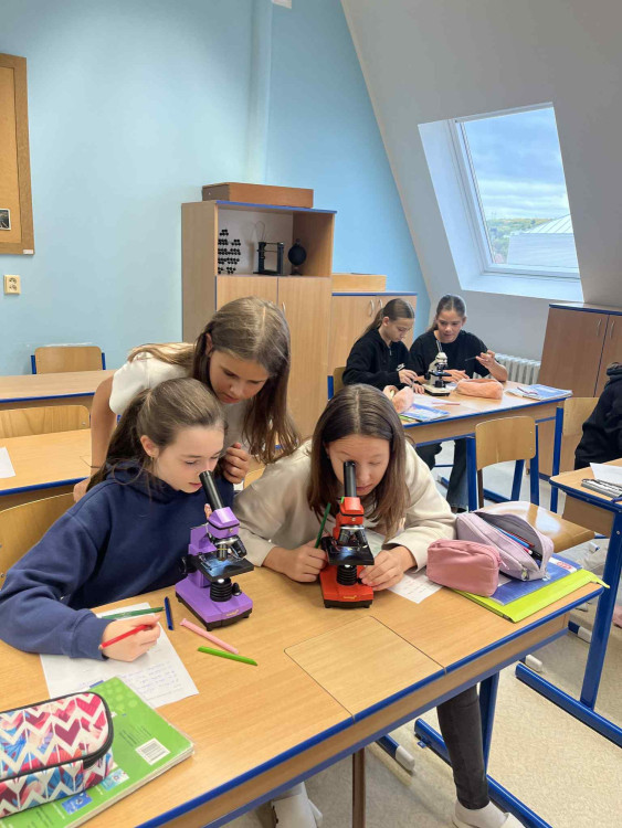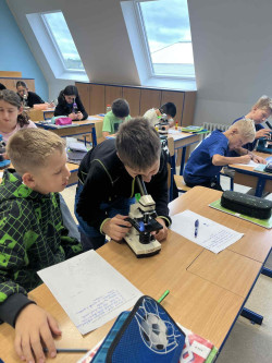 V pátek jsme měli v přírodopisu velký „první krok“: poprvé jsme mikroskopovali. Žáci 6.B se nejdřív seznámili se stavbou a bezpečnou obsluhou mikroskopu, připomněli si krátce historii objevu mikrosvěta a pak se pustili do praxe – jak správně připravit nativní preparát.