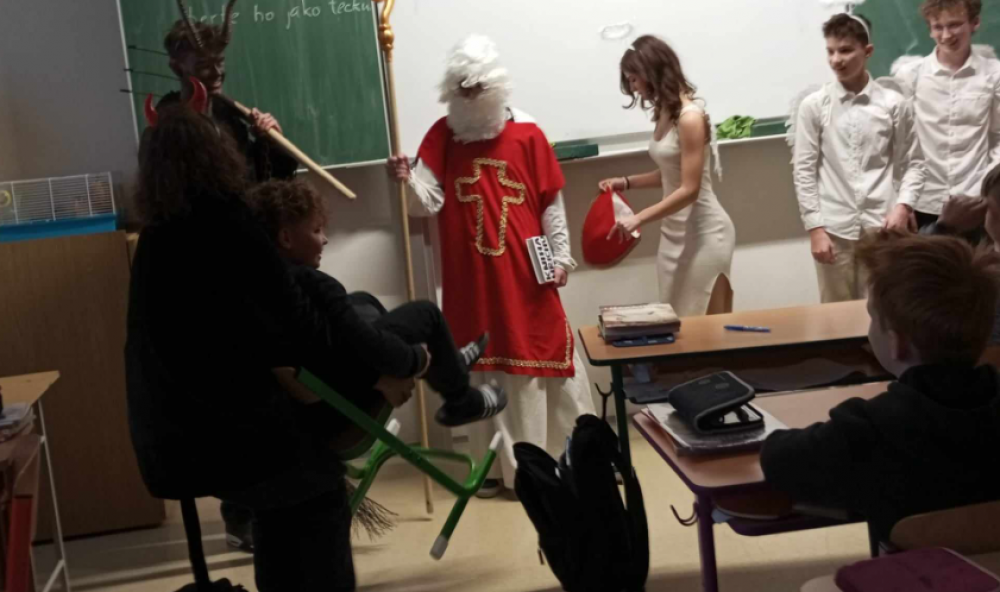 Dnes nás o den později navštívil Mikuláš s čerty a anděli. Někteří jsme byli letos hodnější, u někoho to bylo někdy horší.