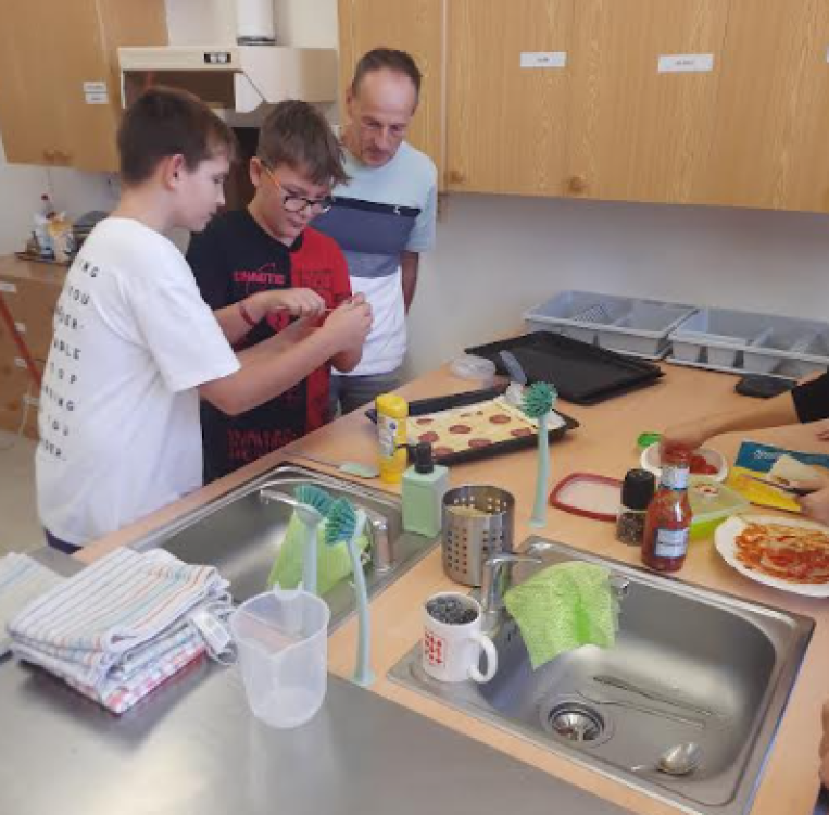 2. 10. 2023 V pondělí jsme si nahradili hodinku vaření se 7.B. I když se nám někdy stane, že se nedomluvíme správně, nebo něco zapomeneme, nakonec si jako kamarádi vždy pomůžeme :o) Špagety s nivovou omáčkou, tortilly a zapečená pizza :o) V.T. 3 / 10 / 2023 VT