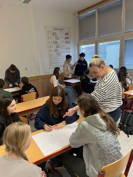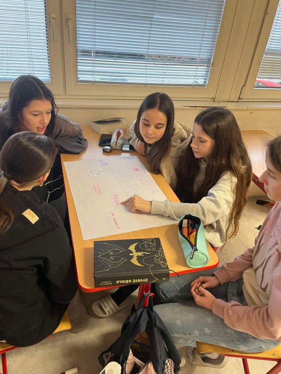 První hodinu žáci ve skupinkách vytvářeli postery zaměřené na jednotlivé poruchy příjmu potravy, jako je mentální anorexie, bulimie či záchvatovité přejídání. Práce žáků byla kreativní a umožnila jim lépe pochopit příznaky a důsledky těchto poruch.