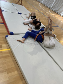 Žáci z 8.B a 8.A, Lukáš Maděra, Ondřej Slezák a Šimon Šmíd si připravili pro své spolužáky hodinu JUDA. Začali tematickou rozcvičkou, procvičily obraty a pády. Poté se vrhli na techniky boje, kde si chlapci mohli procvičit úchopy, vychýlení z rovnováhy, hody, držení a další. Hodina se velice vydařila, chlapci byli nadšení hlavně z techniky boje, kde si mohli vyzkoušet, že ne vždy vítězí silák, ale ten, kdo ovládá správnou techniku.