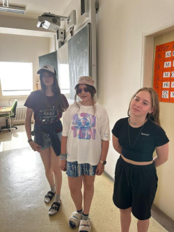 V úterý 17. června pokračoval tematický týden Bye Bye School Week dnem nazvaným Léto v Česku. Škola se na chvíli proměnila v letní destinaci – nechyběly sluneční brýle, šortky, klobouky, šátky ani typická prázdninová pohoda. A ano, ani ponožky v sandálech nezůstaly doma! 🧦