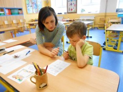 Děti pracovaly s pracovními listy,plnily jednoduché úkoly a paní učitelky při práci s nimi sledovaly, jak vše zvládají a také si s dětmi popovídaly.Děti pracovaly soustředěně a se zaujetím. Za odměnu si vybraly při odchodu dárek, který vyrobily děti ve výtvarné výchově s paní učitelkou Horáčkovou a dostaly také pamětní list..