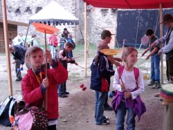 V úterý 12.června jsme se rozjeli na hrad Veveří, kde byl pro nás přichystán program. Kromě prohlídky hradu jsme viděli divadelní představení, u kterého se děti náramně bavily. Také jsme vyráběli svíčky, tiskli na plátno, házeli na cíl sekyrkami, stříleli z kuše, zkoušeli jsme si součásti brnění a mohli jsme i zblízka osahat starodávné zbraně. Kromě jiného zde byla i výstava šatů hradních paní, kovář tu koval přímo s dětmi, vyzkoušeli jsme i žonglování. Děti si zakoupily i nějaké upomínkové předměty, některé dokonce kovaly s mistrem kovářem, jiné zas malovaly na odlitky barvičkami.