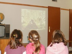 Děti se dívaly na pohádky, spoustu pohádek jim paní knihovnice přiblížila i z knížek.