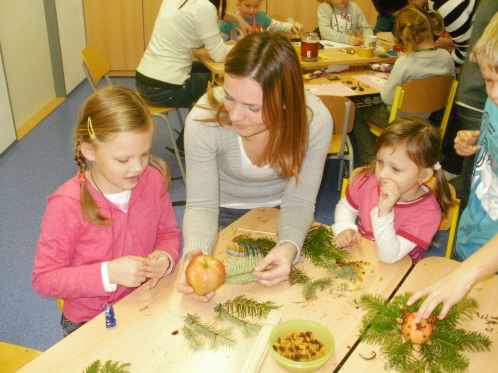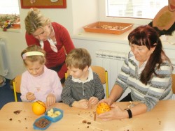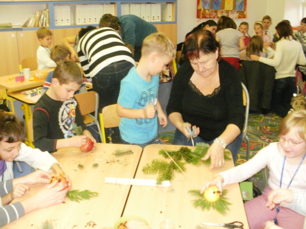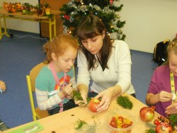 V pátek 2.12. jsme měli s dětmi a jejich rodiči vánoční dílny. Za zvuku vánočních koled jsme zdobili perníčky, vyráběli přáníčka, zdobili pomeranče a jablíčka. Dílničky se dětem i rodičům velmi líbily, byla úžasná atmosféra.