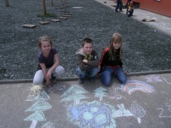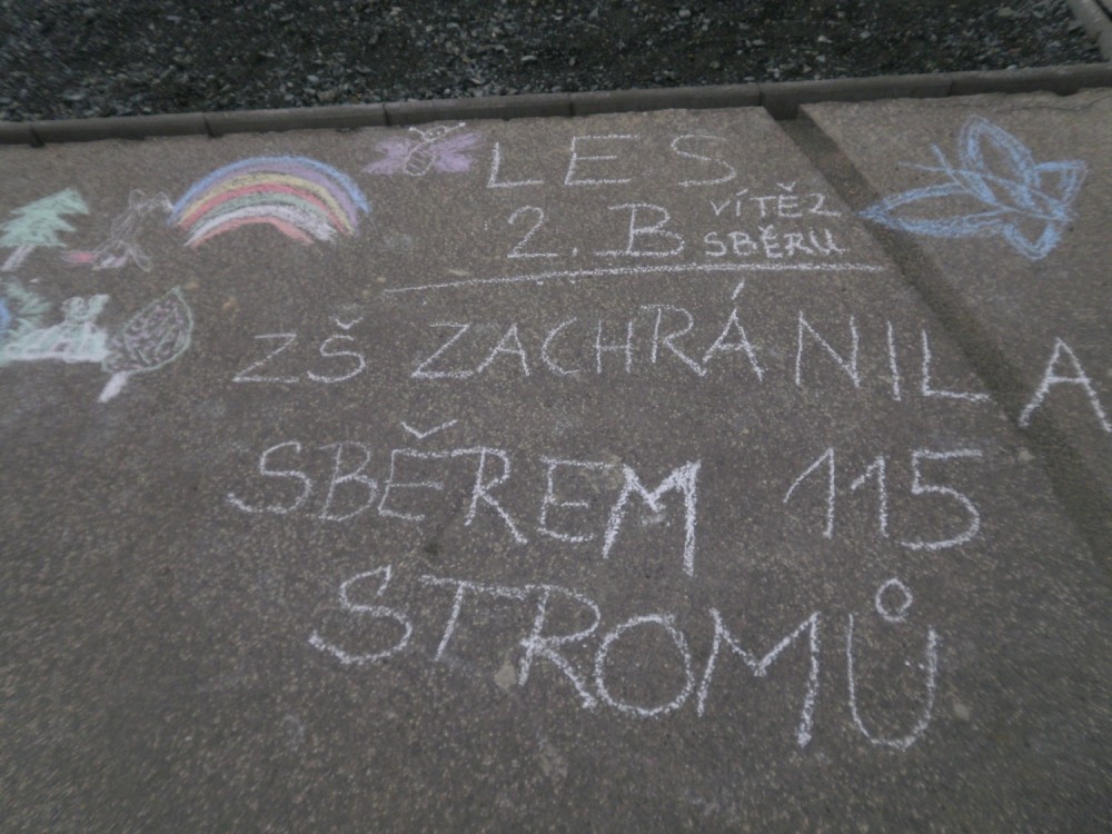 Ve sběru papíru byla naše třída na 1. místě a tak jsme dostali barevné křídy a nakreslili zachráněný les.