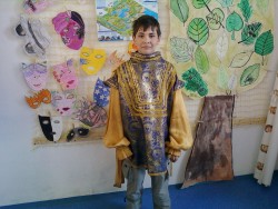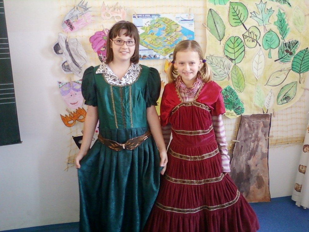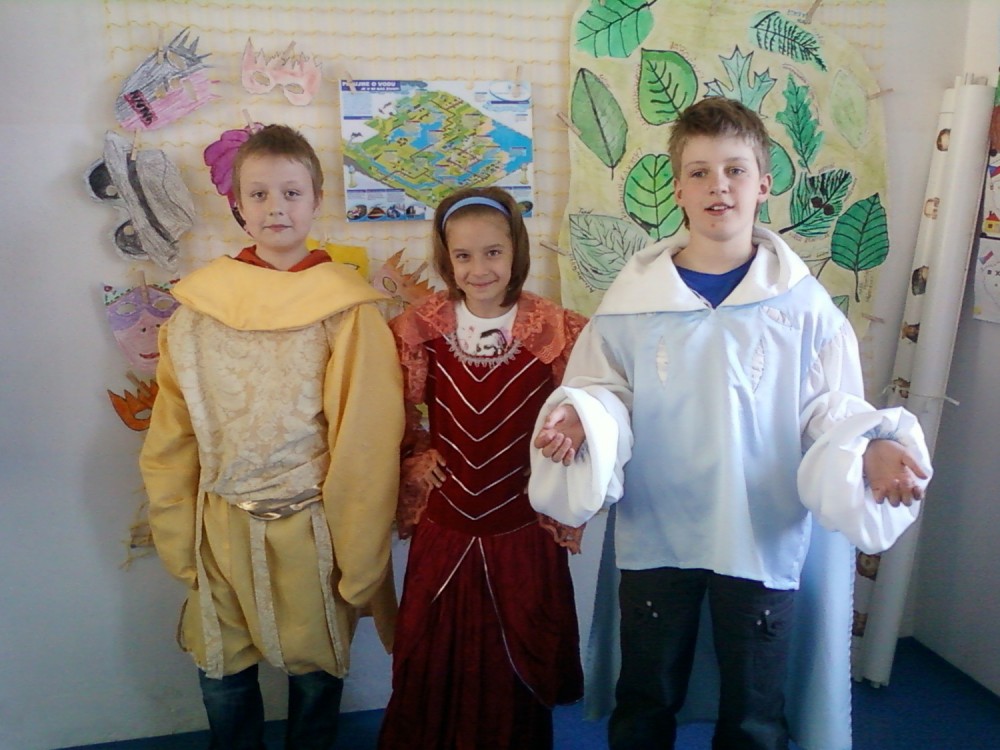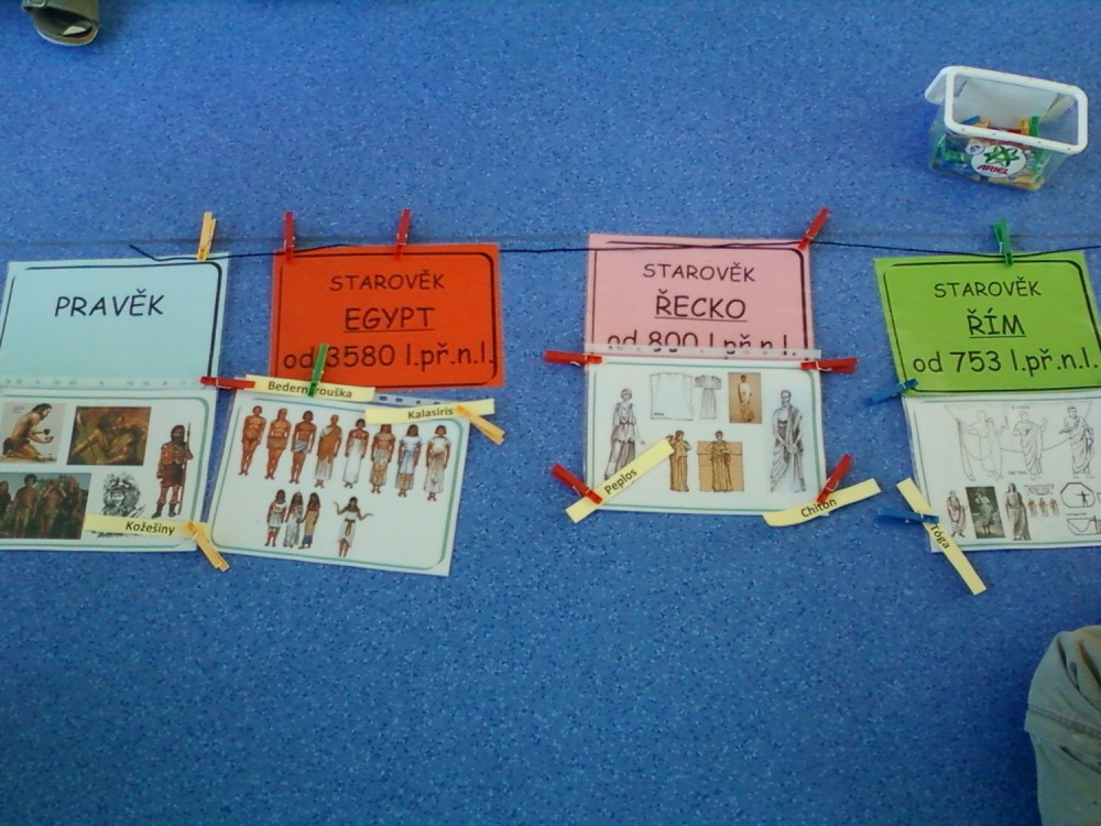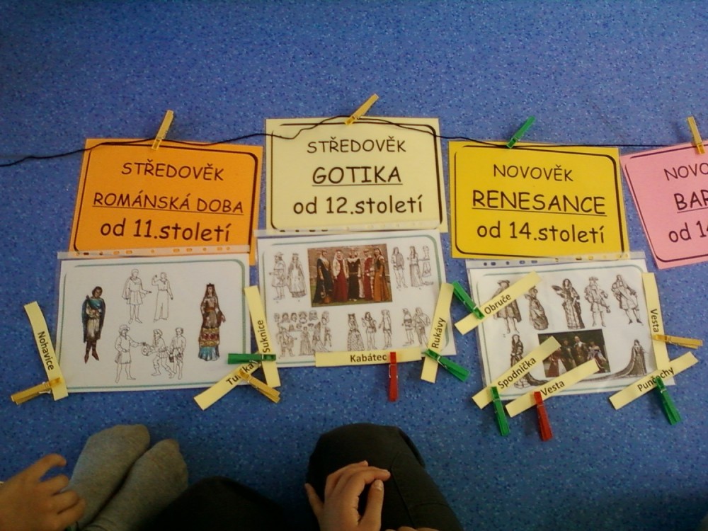 Před velikonočními prázdninami (ve středu 4. dubna) jsme absolvovali výukový program "Historie módy". Přijeli za námi ze SVČ Ivačice a zajímavou formou nás seznámili se základními prvky typickými pro jednotlivá historická období. Přednášející také děti pochválila, jak se orientují na časové přímce a mají probíranou látku pěkně upevněnou a naučenou. Na závěr si mohli vyzkoušet kostýmy z jednotlivých období.