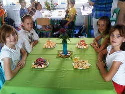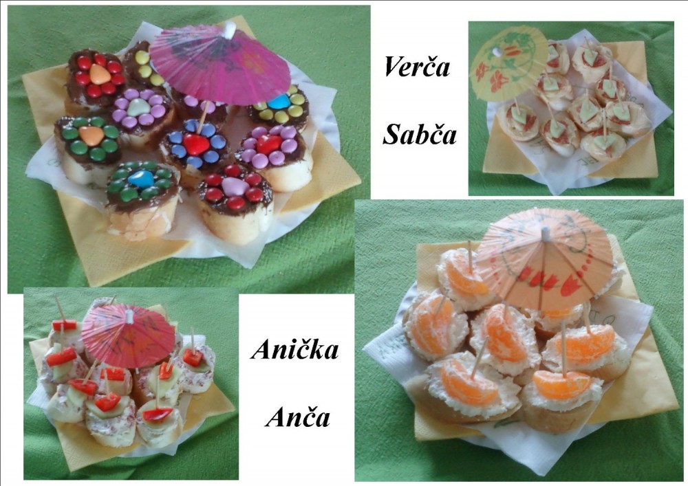 V pátek 1. června jsme Den dětí oslavili "jednohubkami". Žáci si měli z domu přinést veškeré ingredience a také výzdobu na stůl. První hodinu ve skupinkách jednohubky připravovali a chystali stůl, aby byl co nejhezčí. Druhou hodinu chodily paní učitelky po třídách a hodnotily. Nakonec se ukázalo, že síly byly vyrovnané a všichni vyhráli.