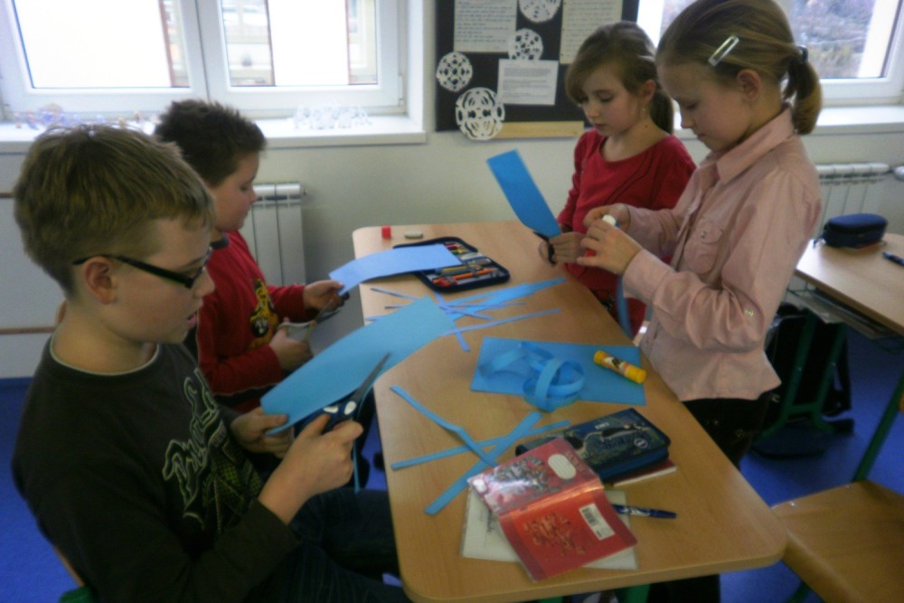 Nejlépe spolupracovali žáci v modré a žluté družince a soutěž vyhráli. Dokázali se společně domluvit, nehádali se a vzájemně doplňovali. Také zelení si práci rozdělili dobře a jejich výsledek nebyl nejhorší. Nešťastně zvolili špatnou velikost kroužků - dělali je příliš malé. Červení, i když se také snažili, nepracovali jako tým, dohadovali se a dělal spíše každý sám za sebe. Možná také proto skončili na posledním místě.