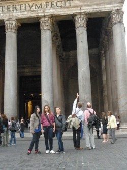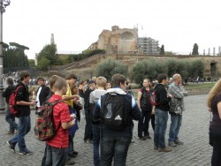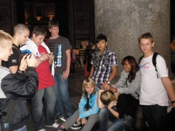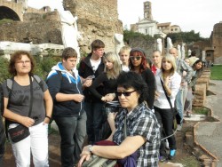 V úterý 25. října vyjely děti deváté, osmé a sedmé třídy se svými učiteli do vzdáleného hlavního města Itálie, Říma, přezdívaného Věčné město, Caput mundi nebo Mamma Roma. Těšili jsme se na památky, atmosféru věčného města, ale i na teplejší klima. To vypadalo zpočátku velmi neslavně, protože celou cestu až do Ostie, kde jsme měli ubytování, nám pršelo. Po příjezdu se znenadání roztrhla obloha a vykouklo sluníčko, které nás pak provázelo po celou dobu pobytu. Tři dny jsme procházeli město, které bylo přes dva tisíce let nejvýznamnějším městem Evropy, sídlem císařů a papežů s obrovským seskupením památek všeho druhu a stáří – od antického fóra, středověkých kostelů nebo prostě jen obyčejných uliček se zvláštní atmosférou. Prošli jsme nejznámější památky od antiky po pompézní barokní vatikánskou baziliku.