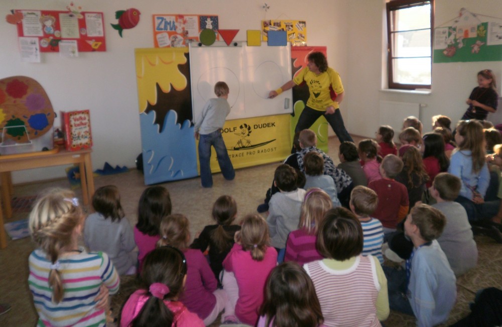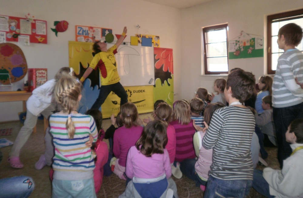 Dne 3.11.2011 se II., III. a IV oddělení družiny zúčastnilo besedy v knihovně s malířem a ilustrátorem Adolfem Dudkem. Beseda byla velice uvolněná a zábavná jak pro děti, tak i pro nás – vychovatelky. Děti si mohly pod vedením pana malíře vyzkoušet své výtvarné schopnosti. Na konci besedy se pan Dudek dětem podepsal na obličej nebo na ruku.