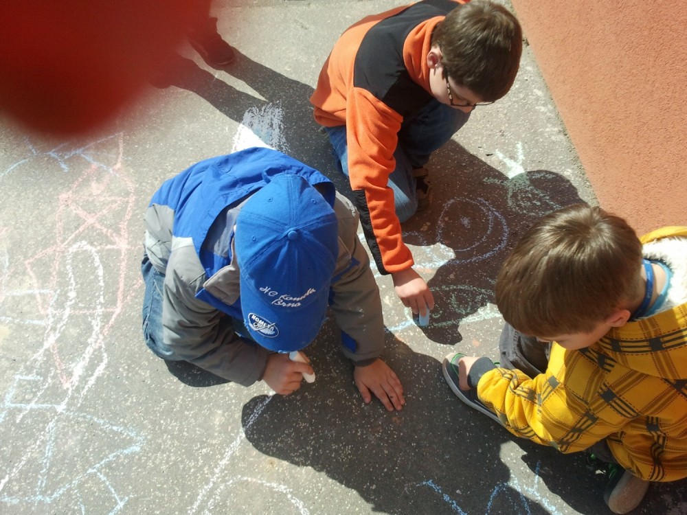 18. 4. 2013 Konečně je venku krásné počasí - vyrazili jsme před školu vyzdobit chodníky:))) Hana Zdražilová 8 / 5 / 2013 Anonym