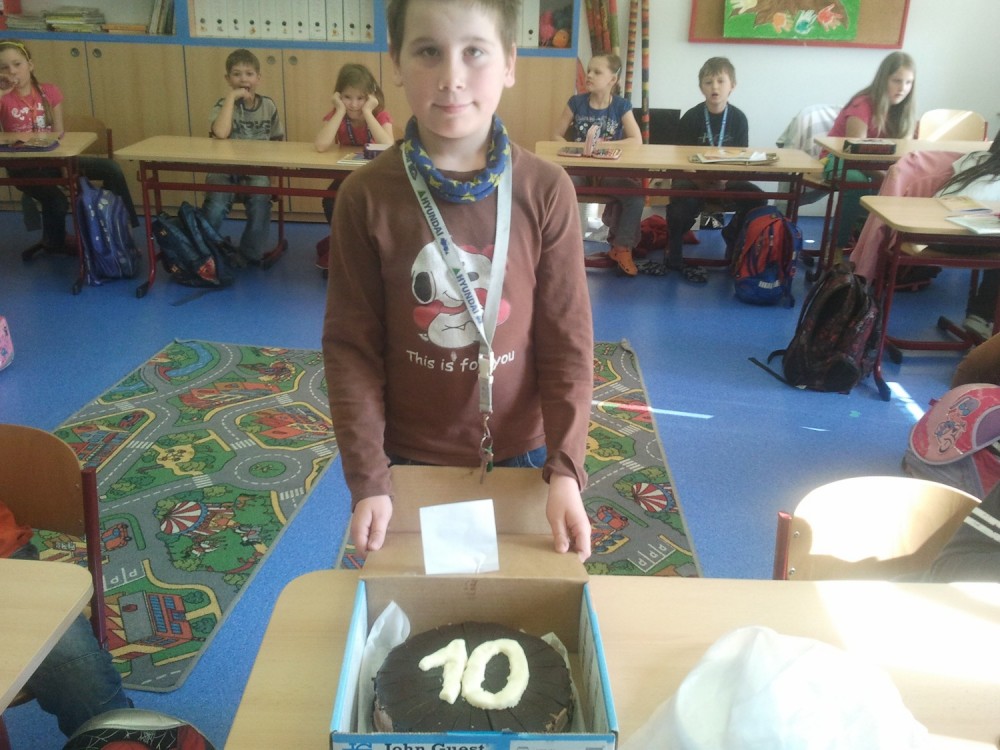 Radeček dnes donesl dort, abychom mohli oslavit  jeho desáté narozeniny. Byla to velká dobrota!!! Moooc děkujeme a blahopřejeme.