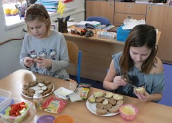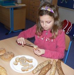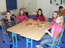 Všichni pracovali s plným nasazením a maximálním zaujetím.Výsledkem naší práce byla opravdová a navíc zdravá hostina připravená především z celozrnného pečiva, chutných pomazánek a zeleniny.Všem chutnal také ovocný salát a jako zákusek kousek piškotové bábovky.