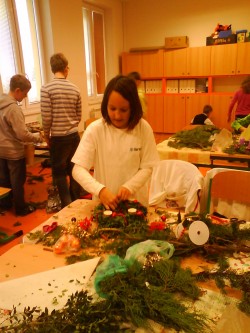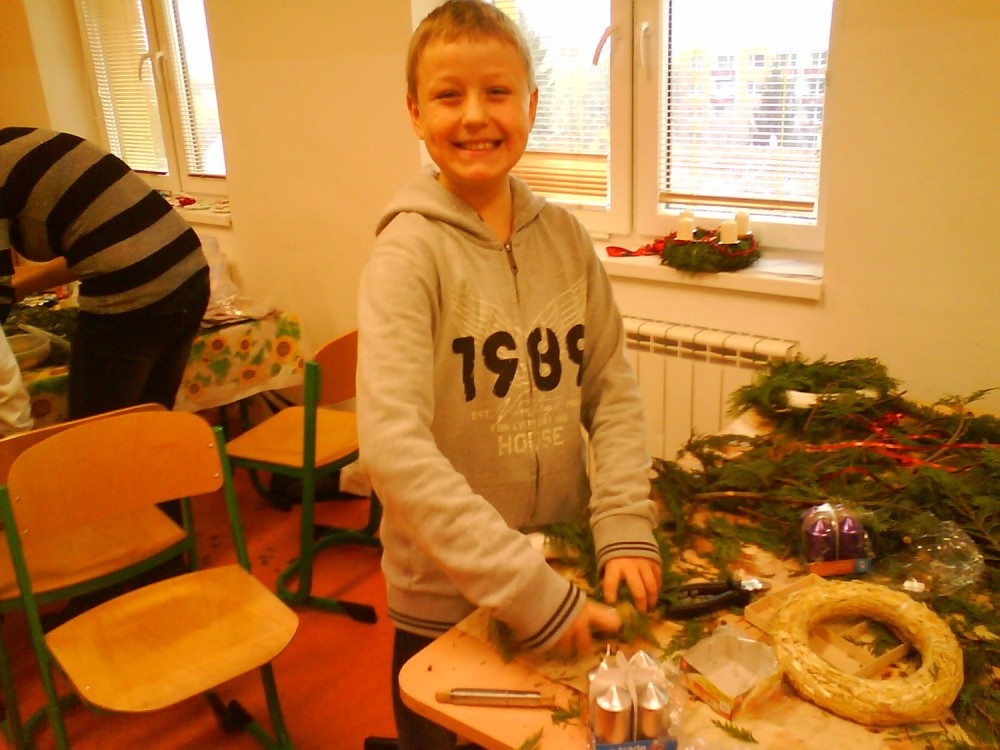 Vánoční čas se nám blíží a tak jsme si vánoční atmosféru navodili tvořením vánočních výrobků ve vánoční dílně, kterou jsme měli v úterý 4.prosince. Na tento den jsme  se všichni moc těšili, učili jsme se pouze 1.vyučovací hodinu.Paní učitelka zajistila materiál, my jsme si také leccos donesli. Na pomoc nám přišly hodné maminky a spolu s nimi se nám podařilo vyrobit krásné adventní věnce, kterými se pochlubíme na jarmarku v pátek 7.prosince v areálu školy na ulici Benešova. Tam si je může kdokoli z návštěvníků nejen prohlédnout, ale i zakoupit.