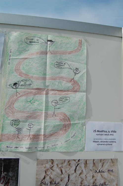 V souvislosti s pietní akcí byla vyhlášena soutěž, které se zúčastnila 9. třída naší školy. Soutěžící měli vyrobit plakát, který by co nejlépe vystihoval téma Aktivní odpor proti bezpráví. Třída si vybrala jednoduchou formu zobrazení, ve které by naopak co nejvíce vynikla myšlenka, že odpor vůči bezpráví je potřebný v každé době, dnešní nevyjímaje.