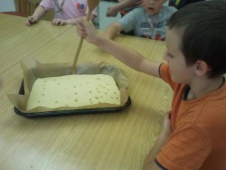 Píchaná buchta je buchta, která děti velmi bavila - upečený základ rozpíchaly vařečkou a dírky polévaly čokoládou. Olizovaly se až za ušima:))))