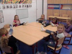 24. 10. 2012 Dnes jsme pletli náramky přátelství z barevných bavlnek. Chvilku nám trvalo než jsme přišli na to kouzlo, po kterém se náramek začne plést, ale naše princezny jsou šikovné a nakonec se jim náramky velice povedly. Hana Zdražilová 26 / 10 / 2012 Anonym