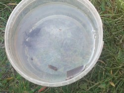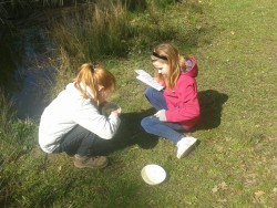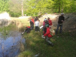 Šli jsme k rybníku, tam jsme se nasvačili. Pan učitel nám ukázal, jak máme lovit. A šli jsme lovit. Vzali jsme si sítka a misky. (Verunka Urbanová)
