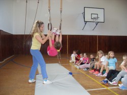 Včera jsme v hodině TV házeli žloutky z kindervajíček, za které všem, kdo donesli, moc děkuji. Dětem se hry s touto netradiční pomůckou moc líbily. Také jsme cvičili na kruzích, všichni byli moc šikovní! Nezapomněli jsme ani na hod míčem, ve kterém se stále zdokonalujeme.