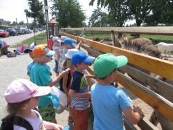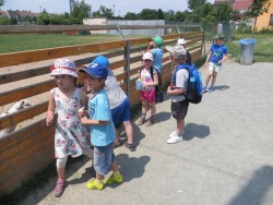 Ve čtvrtek 11. 6. jsme se vydali na školní výlet. Počasí nám přálo a tak jsme hned z rána vyrazili směr hřiště v Olympii. Na hřišti si děti užily spoustu zábavy, posilnily se svačinou a s nadšením jsme pokračovali v cestě. Na cyklostezce jsme potkávali spoustu bruslařů, maminek na procházce s dětmi a cyklistů. Aby nám cesta lépe ubíhala děti vymyslely, že budeme projíždějící cyklisty počítat, v cíli jsme napočítali rovnou stovku :-). Děti celou cestu zvládly výborně, vzájemně se podporovaly a překonaly všechny bolesti nohou a chvíle únavy. V cíli na nás už čekali oslíci Benedikt a Pavel, prasata Bobina, Pepina a Julča a mnoho dalších. Nakonec nemohla chybět zasloužená odměna v podobě zmrzliny.