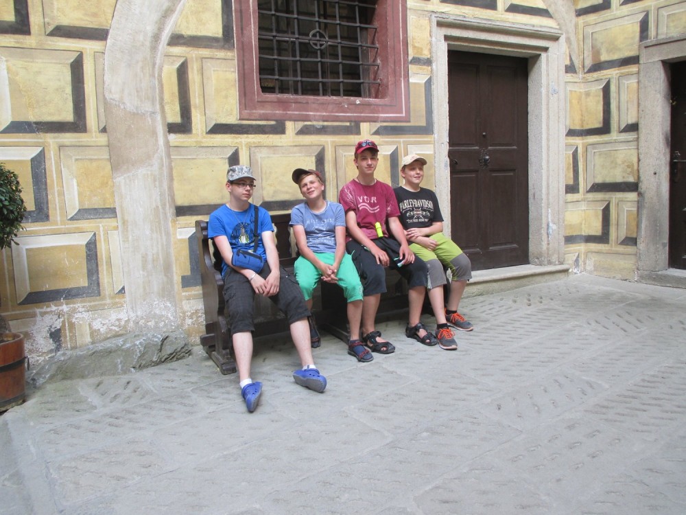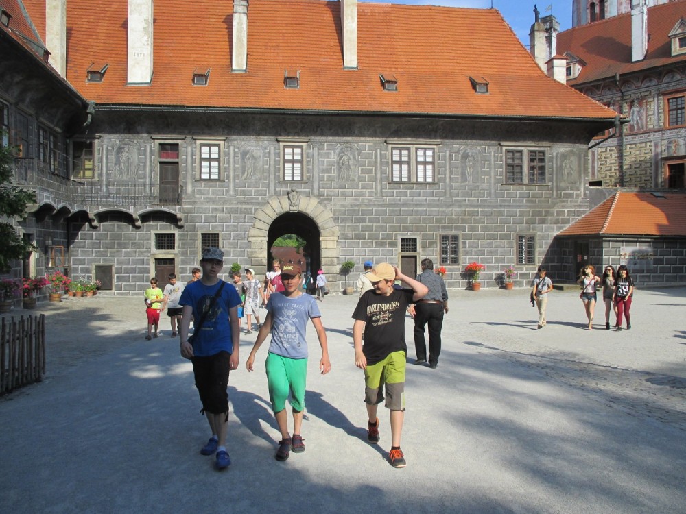 Druhý den dopoledne jsme pokračovali dalším úsekem, tentokrát asi dvacetikilometrovým, který nás dovedl z Rožmberku do Českého Krumlova. Opět jsme postavili stany a vydali se na prohlídku historického města a části zámku, které jsou zapsány na seznamu památek UNESCO. Navštívíli jsme také Zámeckou zahradu, kde se nachází hodně diskutované divadlo s otáčivým hledištěm. Jedná se o docela unikátní záležitost, takováto otáčivá hlediště jsou v naší republice pouze dvě, toto a menší v Týně nad Vltavou.