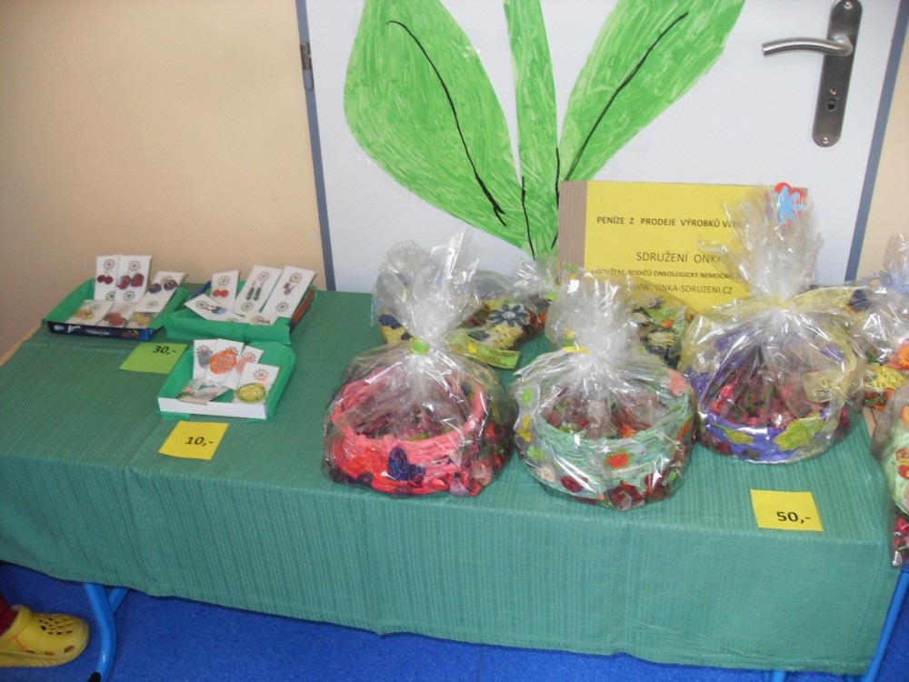 Rodiče měli možnost si vybraná dílka dětí odnést a na oplátku podpořit dobrou věc pro sdružení ONKA. Výtěžek výstavy jsme za pomoci SRPŠ poslali na konto Sdružení rodičů onkologicky léčených dětí ONKA.