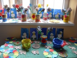 Obrázky z keramiky, papírové košíky a věnečky, malovaní na obličej, panenky, veselého šaška a ještě mnoho dalšího bylo k vidění na jarní výstavě a výstavě panenek, která se konala v pondělí 30.března 2015 na ZŠ Komenského. Panenky připravily děti v 3.oddělení a výrobky na výstavu tvořili všichni v 5.odděleních školní družiny.