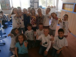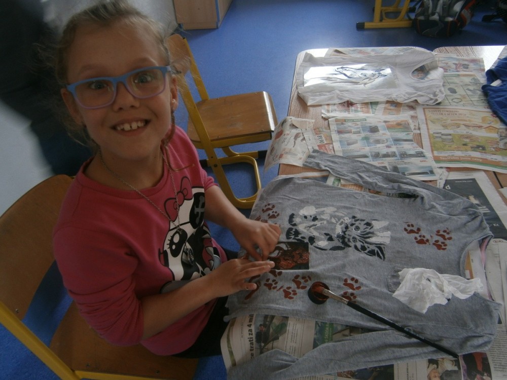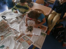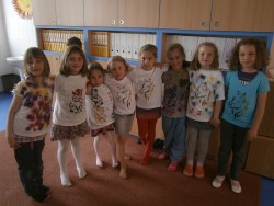 14. 6. 2015 Děti v 1.oddělení si pomalovaly trička s pomocí šablon a barev na textil. 16 / 6 / 2015 VS